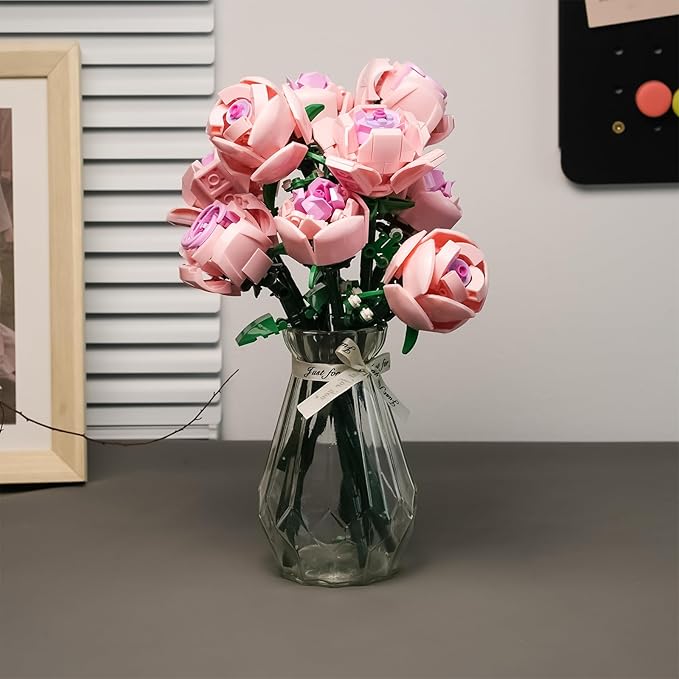 Easy to assemble: This flowers bouquet building kit included 9 pink roses with buildable stems.A easy reading manual and a giftable box