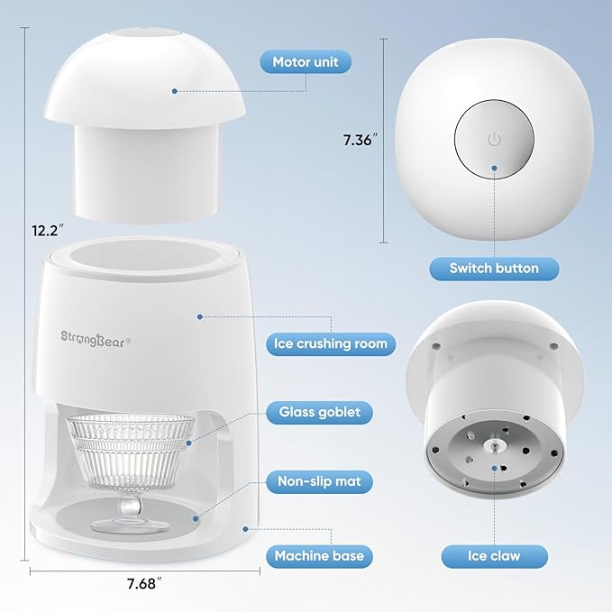 【 Easy to Use】 No complicated assembly required, out-of-the-box. Just press a switch to start shaving ice. Effortlessly shave ice to create the perfect fluffy snow cone texture