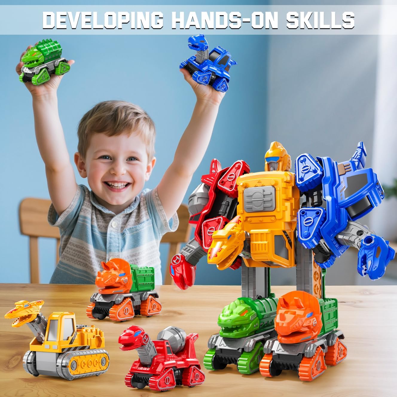 Transforming Robot Toys Set Construction Trucks, Dinosaur Vehicles 5 in 1 Transform Robot For Kids Ages 5-7, Educational STEM Building Toy Cars, Christmas Birthday Gifts for Boys 3 4 5 6 7 8 Years Old