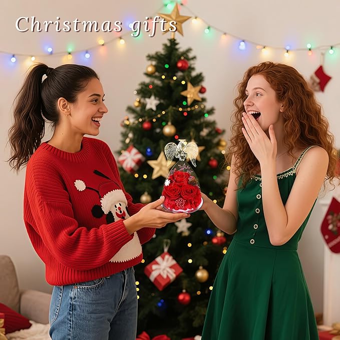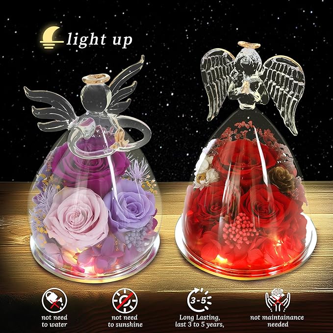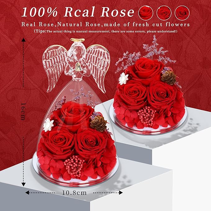 Preserved Flowers Rose Gifts for Women,Eternal Roses Forever Flower in Glass Angel Figurines for Delivery Prime Birthday Mother's Day for Girlfriend Grandma Wife Sister Daughter Valentine Christmas