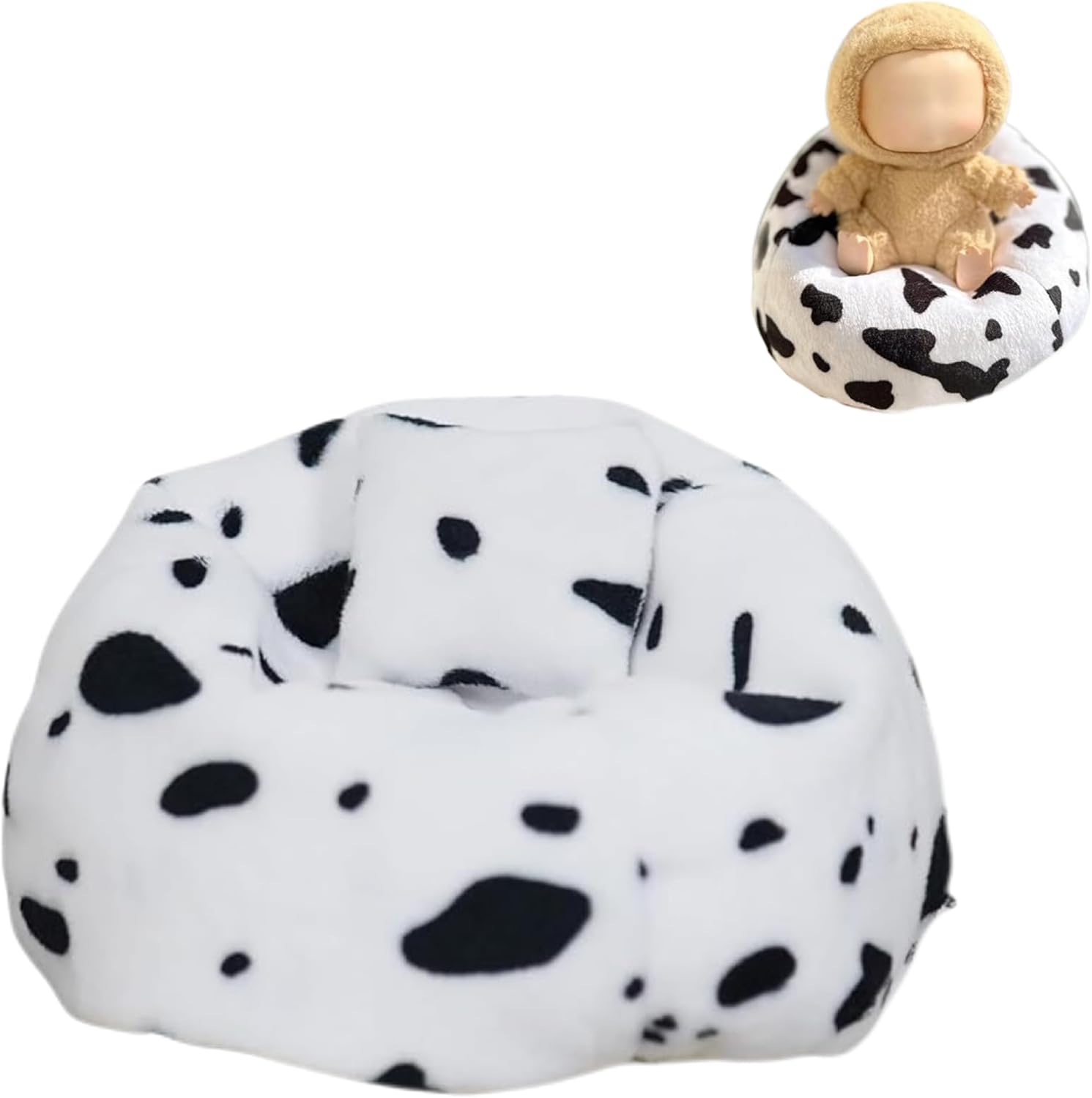 Miniature Sofa for Labubu, Cute Doll Seat for 17cm Labubu, Handmade Bean Bag Chair with Pillows, Soft Lazy Sofa Seat Miniature Couch for Dollhouse Furniture Decoration (Cow)
