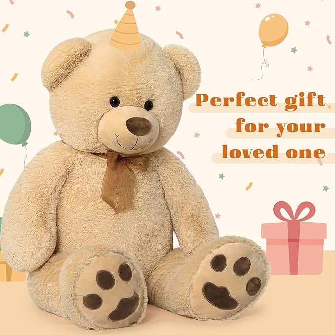 Tezituor Giant Teddy Bear Stuffed Animal 4ft - Classic Big Teddy Bear - Brown Large Stuffed Bear Plush Toys for Kid Christmas Birthday - Gift for Girlfriend