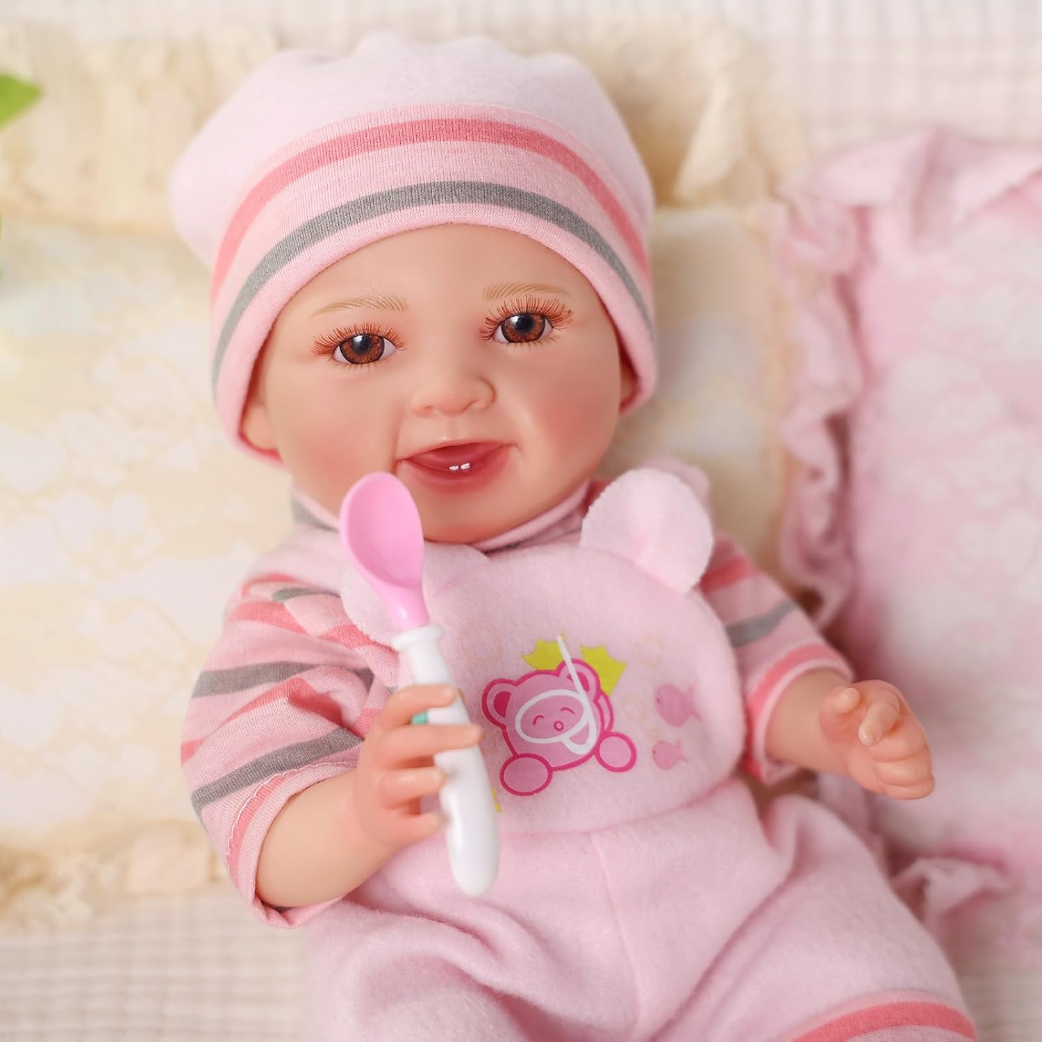 More Life-like Realism: Experience the joy of cuddling with a doll that feels just like the real reborn baby doll! Our 12-inch little baby doll is easier for your children to hug and hold. With hand-rooted eyelashes, delicate baby-like fingernails, and realistic folds on its tiny hands and feet, the rosy cheeks add to its charm, making it a delig.htful addition to any doll collection