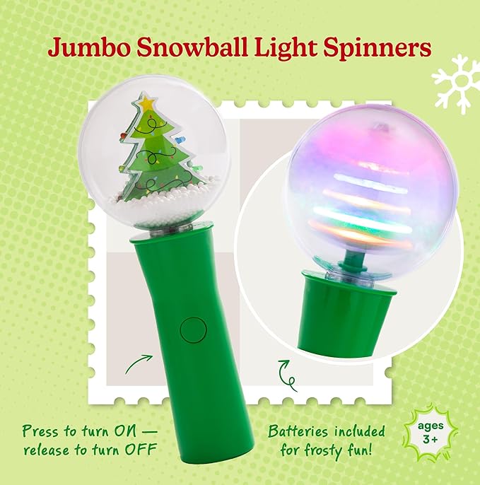 Jumbo Snowball Light Up Christmas Spinners LED Spinning Wand Toy, Sensory, Stocking Stuffer, Party Favor for Kids & Adults (Christmas Tree)