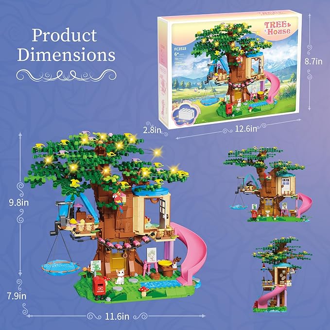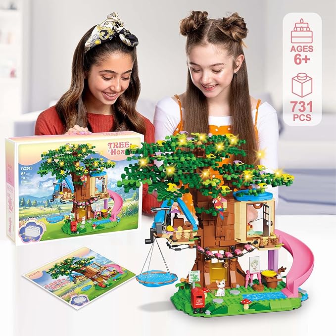 【Creative DIY Building Experience】This 731-piece Treehouse Building blocks for girls friends Kit offers endless fun and learning. Perfect for kids aged 6-12 8-14 to develop their creativity, fine motor skills, and problem-solving abilities while building a stunning treehouse