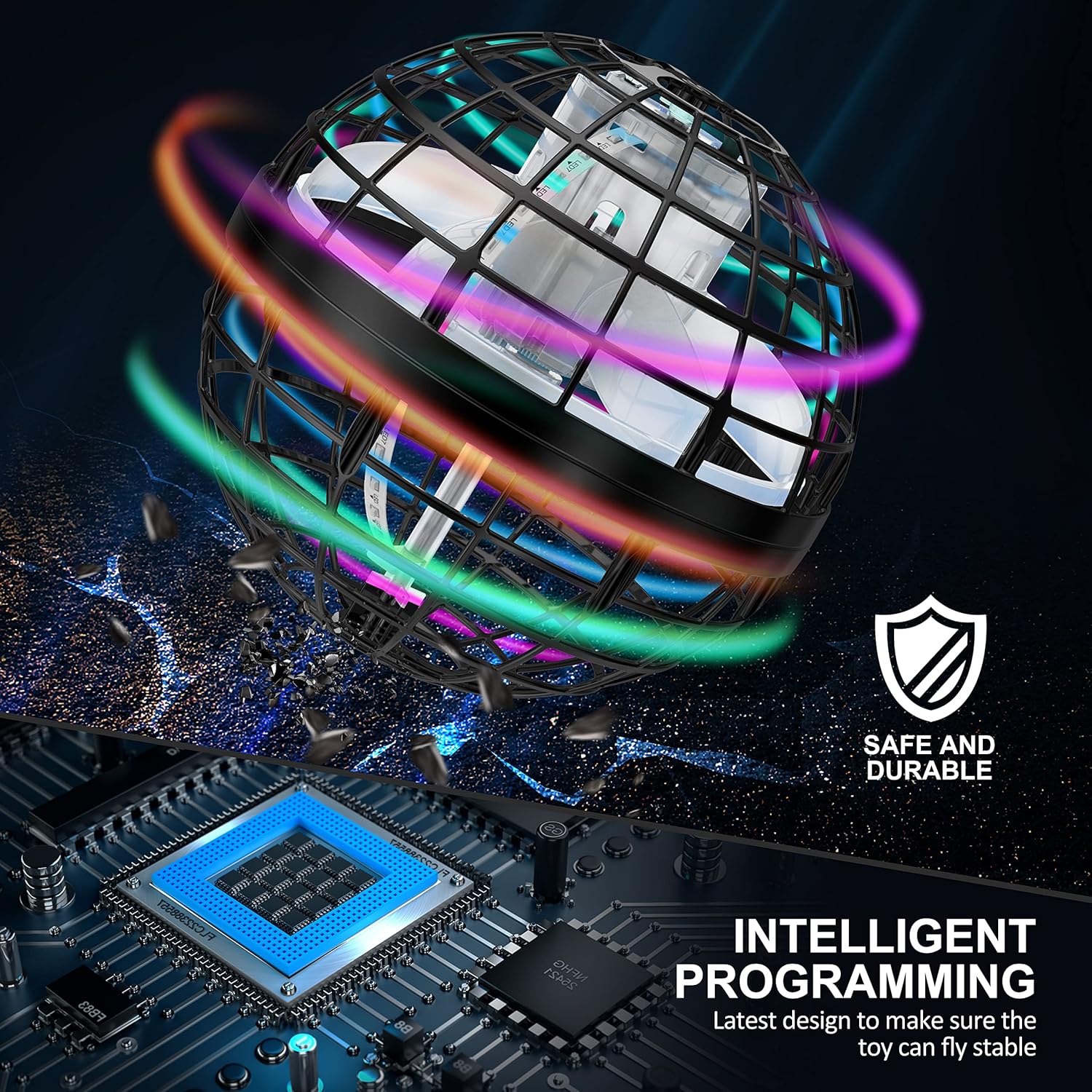 • High-Tech Hand Controlled Drone Toy With Cool RGB Light: The flying orb toy provides intelligent flight. Different throwing angles and speeds will create different flight lines and boomerang effect.You can use your ingenuity to create your unique way of playing.The colorful led at night will make your magic ball cooler